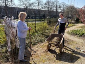 Op 21 maart hebben ruim tien bewoners en ouders de handen uit de mouwen gestoken in de tuin van Puzzelstuk.