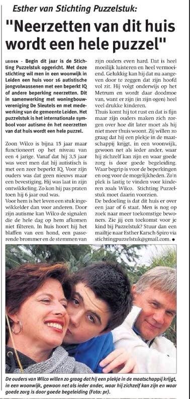 Mooi artikel in het Leids Nieuwsblad om toekomstige bewoners te werven voor Puzzelstuk.